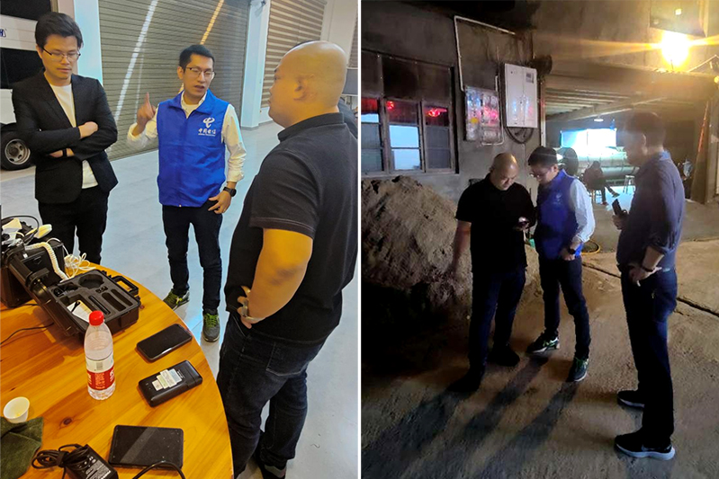 10月15日电信技术人员在用乐众“救援神器”搜星,定位。